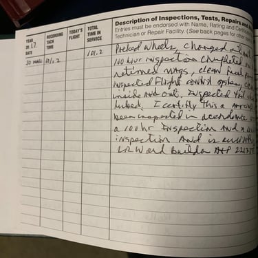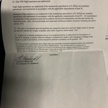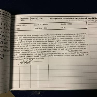 six fuel tanks total (4 in wings - 84gall and 2 in the baggage compartment 26gall and installation for a 20gall seat tank) 110gal of fuel built in.